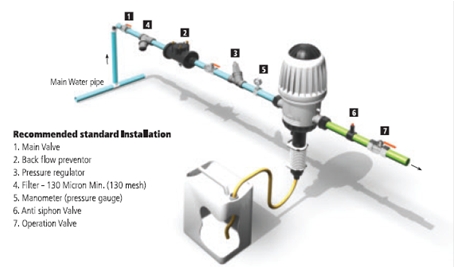 A felhasználó igényeinek és a működési területnek leginkább megfelelő MixRite modell könnyen kiválasztható a rendszer főbb paramétereinek ismeretében. A készülék automatikusan működni kezd, ha a víz áramlása megkezdődik a csővezetékben és folytatódik mindaddig, amíg az áramlás véget nem ér. A működés bármikor felfüggeszthető a mechanikus KI/BE kapcsoló kézi működtetésével.